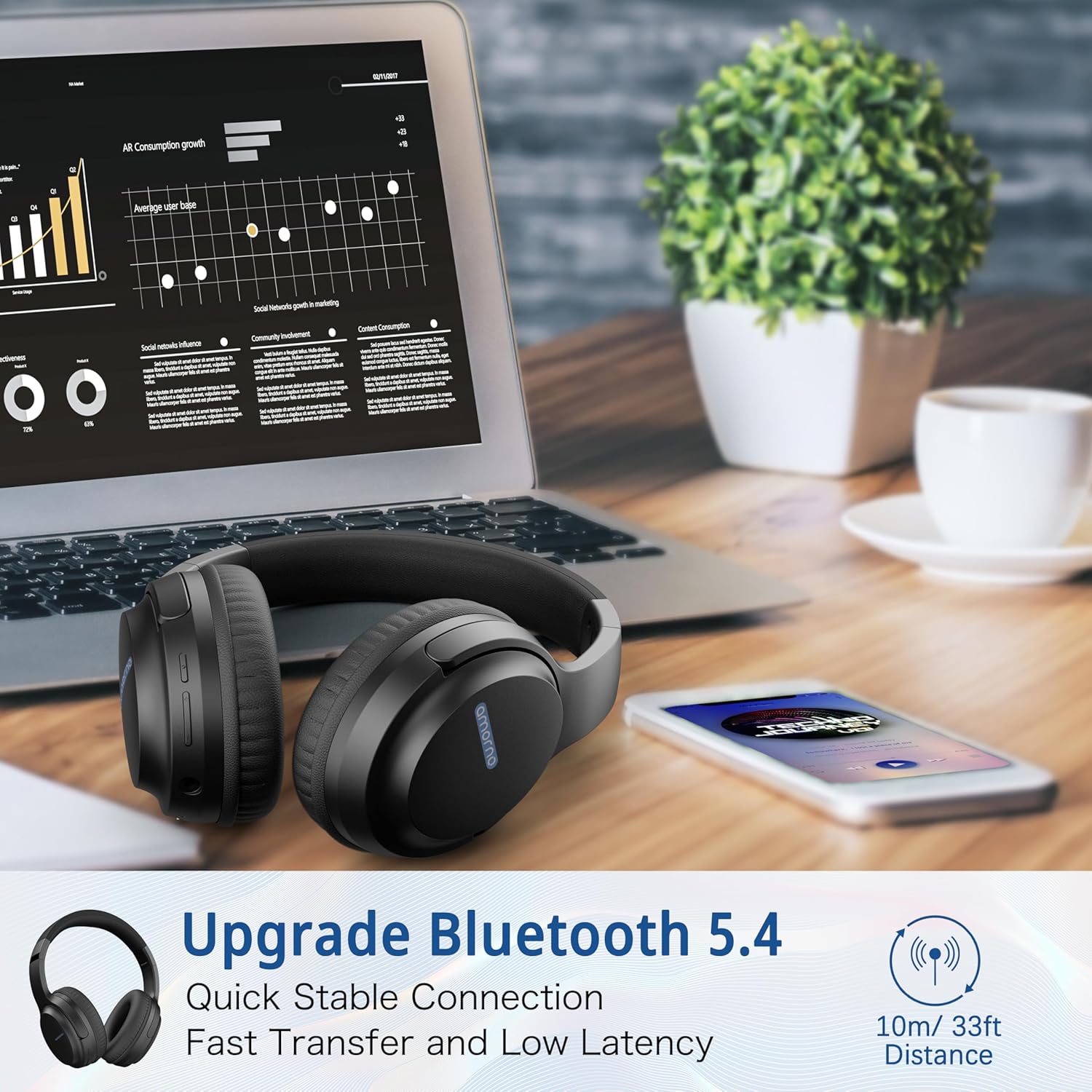AMORNO Wireless headphones over ear with bluetooth V5.4, Up to 68 hours playtime, treat your ear with wonderful music.