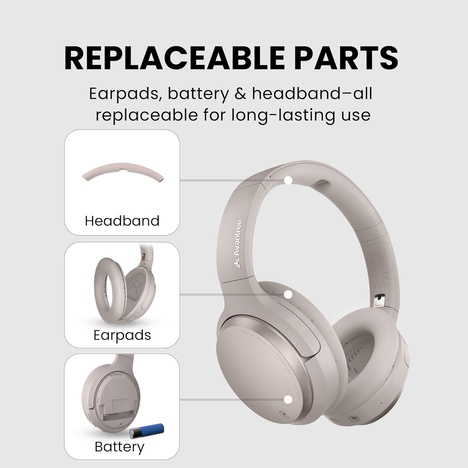 【Replaceable Parts for Longer Lifespan】Extend product life with replaceable battery, earpads, and headband padding – designed for years of reliable use.