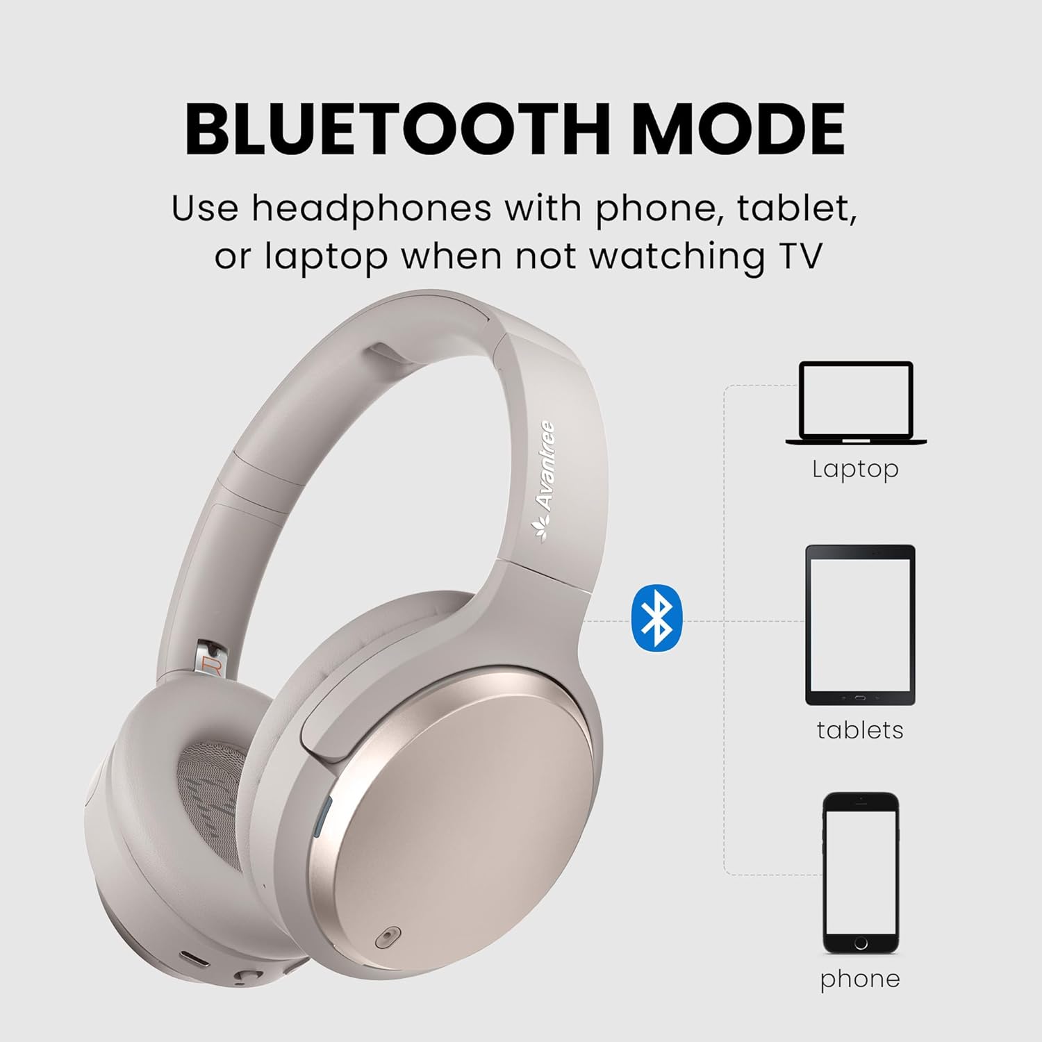 【Everyday Use Bluetooth Headphones】Use them beyond the TV, ANC and Transparency modes adapt to different environments, making them perfect for music, calls, and listening on your phone, tablet, or laptop.