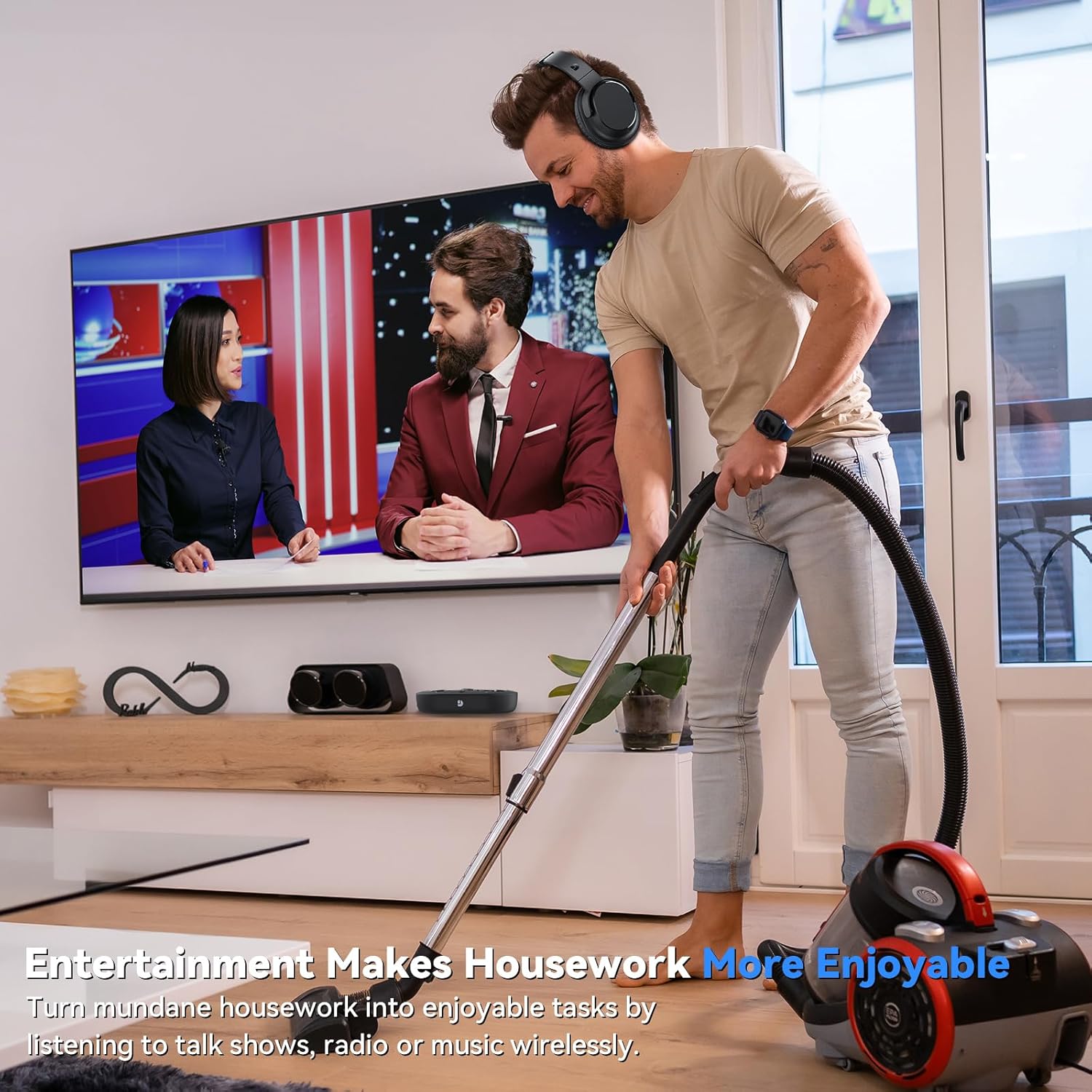 Immersive Viewing Experience: With advanced audio technology and high-fidelity drivers, the wireless headphones for TV let you hear the delicate sound of the breeze as Scarlett walks through the vast cotton fields while watching Gone with the Wind. As Scarlett sits alone in the shadows, sad music quietly plays, and the soulful melody makes you resonate with her emotions as if you were there. Every detail in the wireless headphones for TV makes this immortal story more vivid