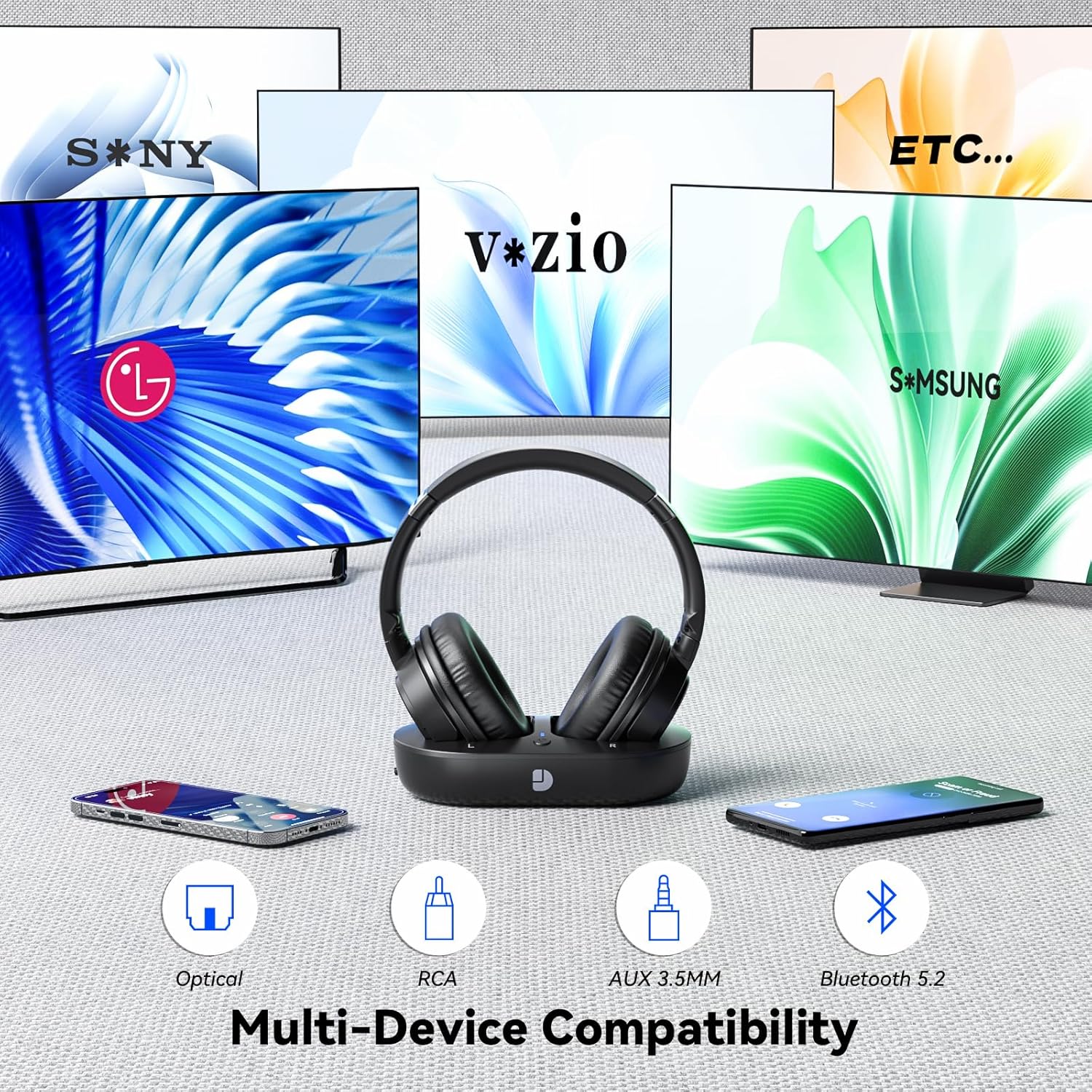 Review: The Dytole Wireless Headphones for TV are fantastic! The sound quality is crystal clear, and there’s no delay between the audio and the picture — perfect for watching movies or shows. They connect easily to the TV, and the wireless range is excellent. The headphones are lightweight and very comfortable, even after hours of use. I also appreciate the long battery life and fast charging. Great for late-night watching without disturbing anyone. Overall, high-quality, easy to use, and totally worth the price!
