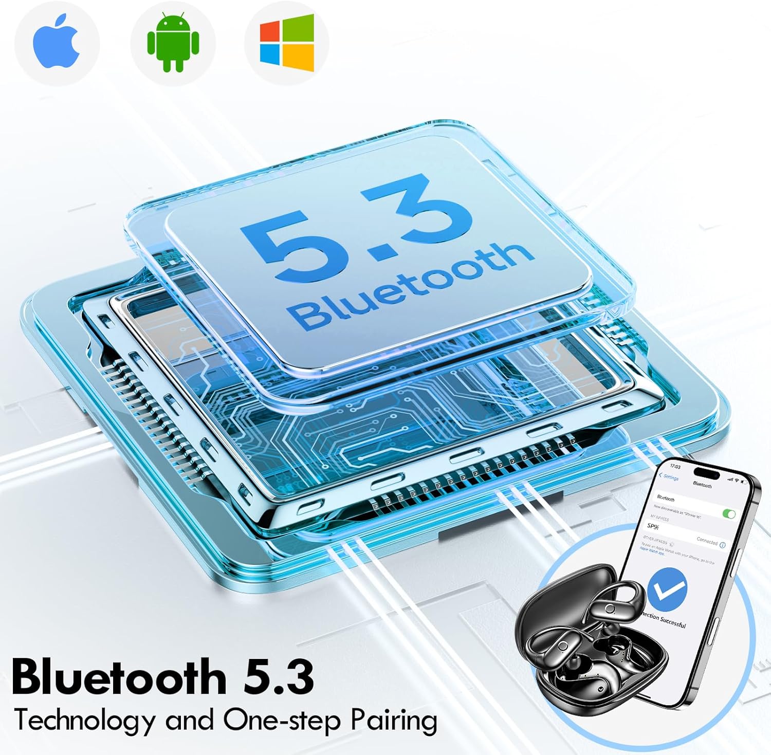 Over-Ear Design for Unmatched Comfort:kurdene over-ear headphones feature a unique design that rests gently and securely on top of your ears, ensuring a natural, pressure-free listening experience. The soft silicone ear hooks provide a snug and stable fit, making them perfect for all activities—from workouts to everyday wear