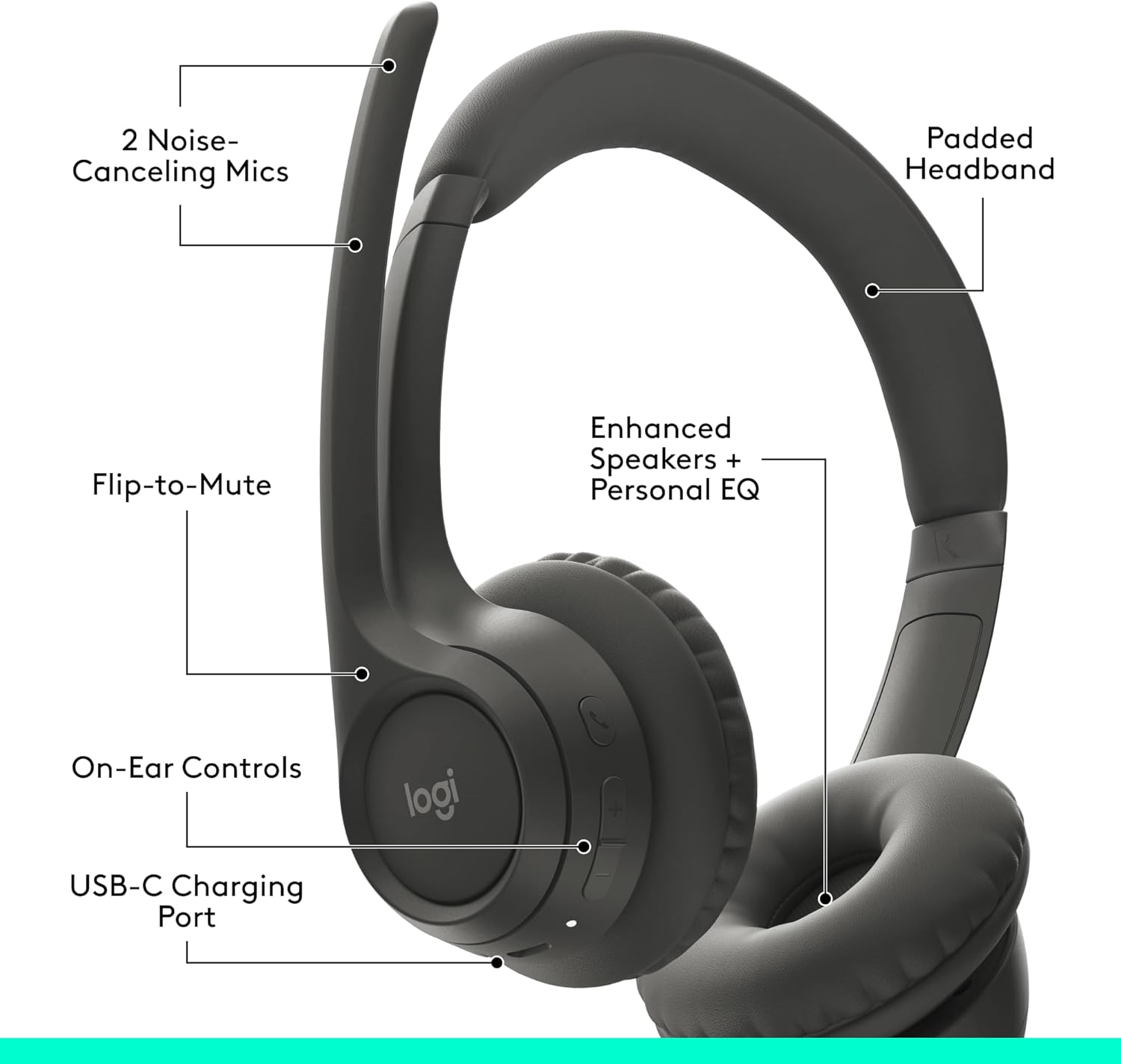 Logitech Zone 301 Wireless Bluetooth Headset with Noise-Canceling Microphone, Compatible with Windows, Mac, Chrome, Linux, iOS, iPadOS, Android – Graphite