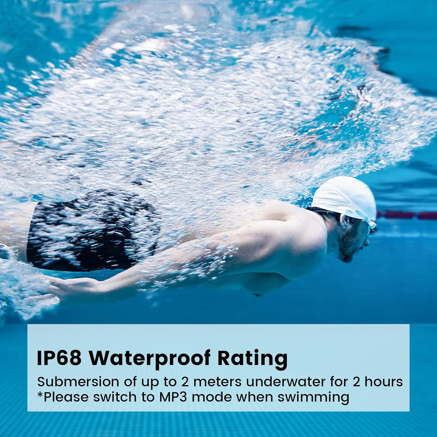 Fully IP68 Waterproof: With an IP68 rating, these bluetooth headphones withstand being submerged 2 meters underwater for 2 hours. Whether swimming or running in the rain, the Run Plus won’t let you down. (Tips:Please ensure both your hands and the product are dry for optimal performance. Wet conditions may cause operation to fail.)