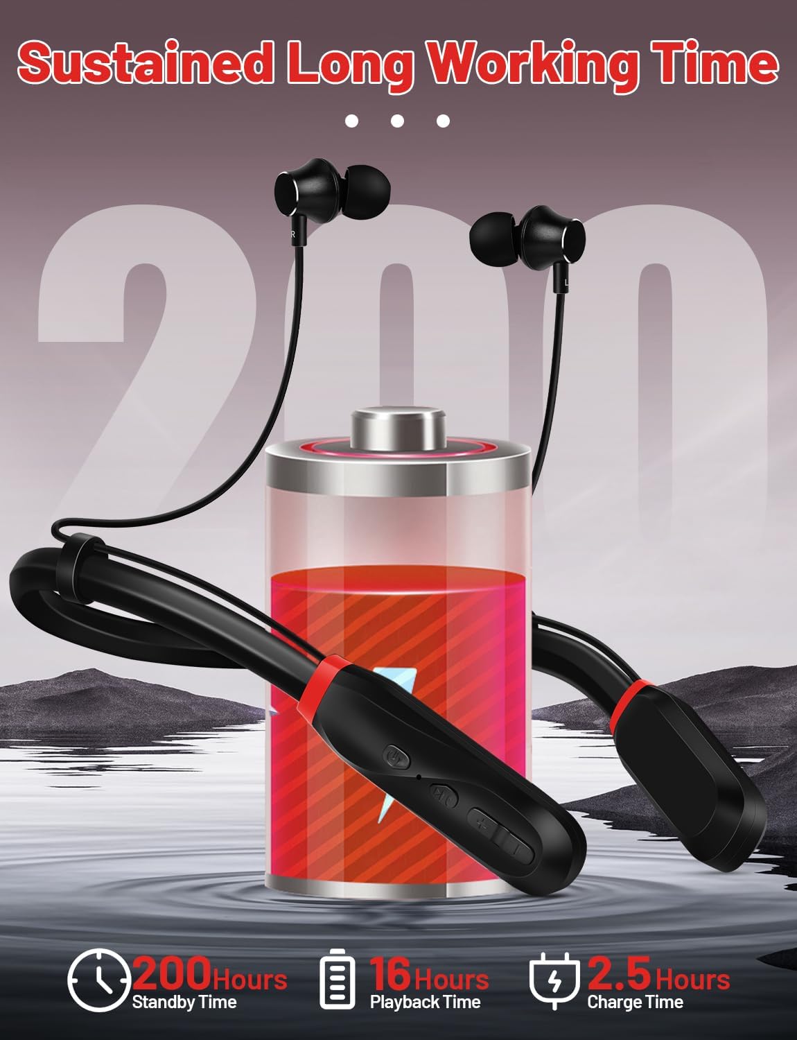 HIGH-QUALITY HIFI STEREO SOUND:The bluetooth neckband headphones is customized with a balanced armature driver for each earbud to ensure good balance between low, high and mid-range frequencies and offer you with high-quality hifi stereo sound and deep bass. The cavity made of aluminum alloy ensures the stability of the sound without being affected by external signals. The neckband earbuds with microphone provides clear phone calls.