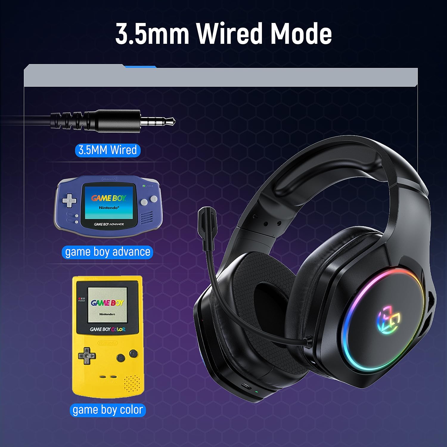 【Multi-platform Compatibility 】This gaming headphones with the 2.4GHz USB & Type C dual dongle and 3.5mm cable, compatible with Ps4/Ps5/PC/Switch/Mobile phone. Just plug in the equipment, and you can get an immersive and convenient gaming experience anytime, anywhere